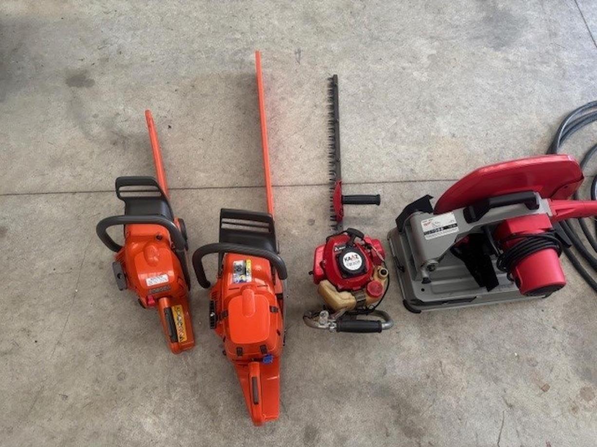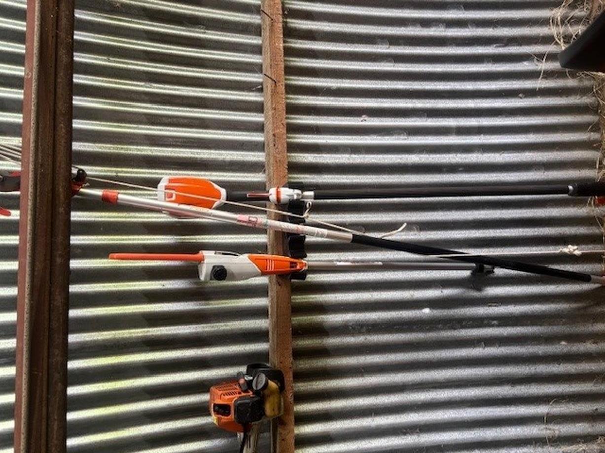 Scaffolding Metal/Wheels, Tas Blower, Kea Calf Trailer, Atom Edger, Weed Eater Tiger 40, Husqvana 335R Weed Eater, Concrete Mixer/Water & cement tanks, Drop Saw Milwqukee - Blade size 305x30x2.4mm, Steam-N-Demon/Gun (Steam Cleaner), Rotary Hoe/Garden, Miller Gerator Welder, Cubcadet Wood spliter 33 US Ton, Tool Line Band Saw 340mm, Pipe Bender Hydraulic, Fait Tractor 600DT-5000 Hours, Winch Fairy Husky, Young 300 amp Welder, Chain Saw x 2-Husqvarna 445, MSA 161T, Milwaukee Cut off Saw, Floor Jack x 2, Petter Motor, Alco Ladder - folding extension, Extension Ladder 21 ft, Drums, Shed Doors-wooden, Battery Charger 24V, Solo Backpack Sprayer 15Lt, Husqvarna Backpack Sprayer 15Lt, Napsack Sprayer Motorised, Loading ramps - 1 pair, Mate Post Hole Borer, Stihl Pruning Saw, Cambridge Roller, Wire Winder - motorised, Stumping Jack, Spinning Jenny, Winch - manual (fits Landrover), Fencing Wire, Wood Planer Electric with sharpener, Black & Decker 1/4" Drill, Skill Saw 8 1/4"-several blades, Stanley Mitre Box, Bosch Electronic Electric Drill CSB 700-2RE, Bosch GBM Drill Battery, Black & Decker 7" Heavy Duty Angle Grinder, DeWalt Reciprocating Saw, Angle Grinder 100mm, VW Tool Kit (fits in spare tyre), Homemade Firewood Saw Bench with folding table, Briggs & Stratton 3200psi Water Blaster, Segway 4x4 side by side (Near new), Air compressor MAR Quip, Row Boats x 2 Aluminium, Duck Boats x 2 Wooden, Axel Stands x 4, Carry All 3pt Linkage with Stock sides, Work Bench - Mobile, Work Bench - Fixed, Komotso Digger PC120-3 with tilting bucket, Weed Bucket, Rock Bucket-6000HVR, Aitchison seedmatic 2016 Multi Drill, Hay Rivierre Casalis KR40TS, Hardy 400 Ltr Boom Sprayer, Kea Trailer, Stiga Ride On Mower, Post Ramer, Mole Plough, 3 PT Linkage Grader Blade, Pan Breaker Aitchison, Tyne Harrows, Chain Harrows, Pearson Front End Loader, Silage Forks/Log Forks, Bucket, Bisley Tipping Farm Trailer/Hay Extension, Drums, Scaffolding Wooden/Planks
